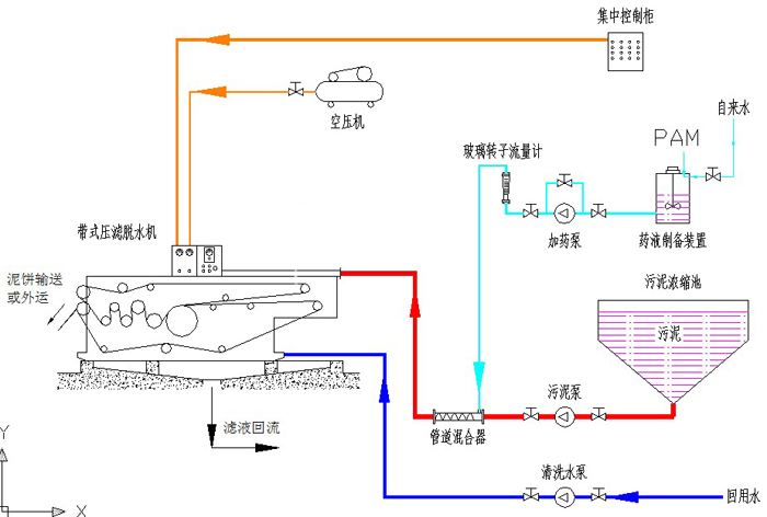 DY皮帶輪勒住出現脫水過濾機,是由浮力出現脫水過濾路段、壓濾路段(有多少相差通徑輥筒)及上、下濾帶等購成。是磨煉操控浮力和輥筒的不停勒住對介質購成截段影響實現固液分開的高效率設備;其目標線程及理論一下: